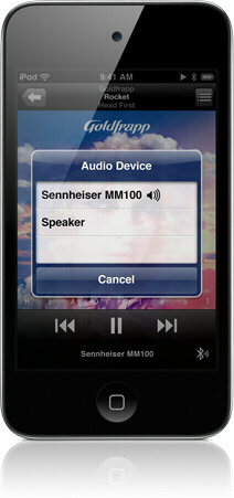 El iPod touch es compatible con la tecnología inalámbrica Bluetooth, para que puedas enlazar unos auriculares estéreo sin cables. Ahora puedes llevar tu iPod touch en el bolso o tenerlo cargando al otro lado de la sala y seguir escuchando tu música como si nada.