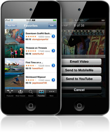 No esperes a sentarte delante del ordenador para editar tus vídeos. La edición básica integrada en el iPod touch te permite hacerlo cuando quieras. Simplemente arrastra el dedo para seleccionar los puntos de principio y fin de una secuencia. Quédate tan solo con las partes que quieras y conviértelas en el vídeo estrella entre tus amigos.